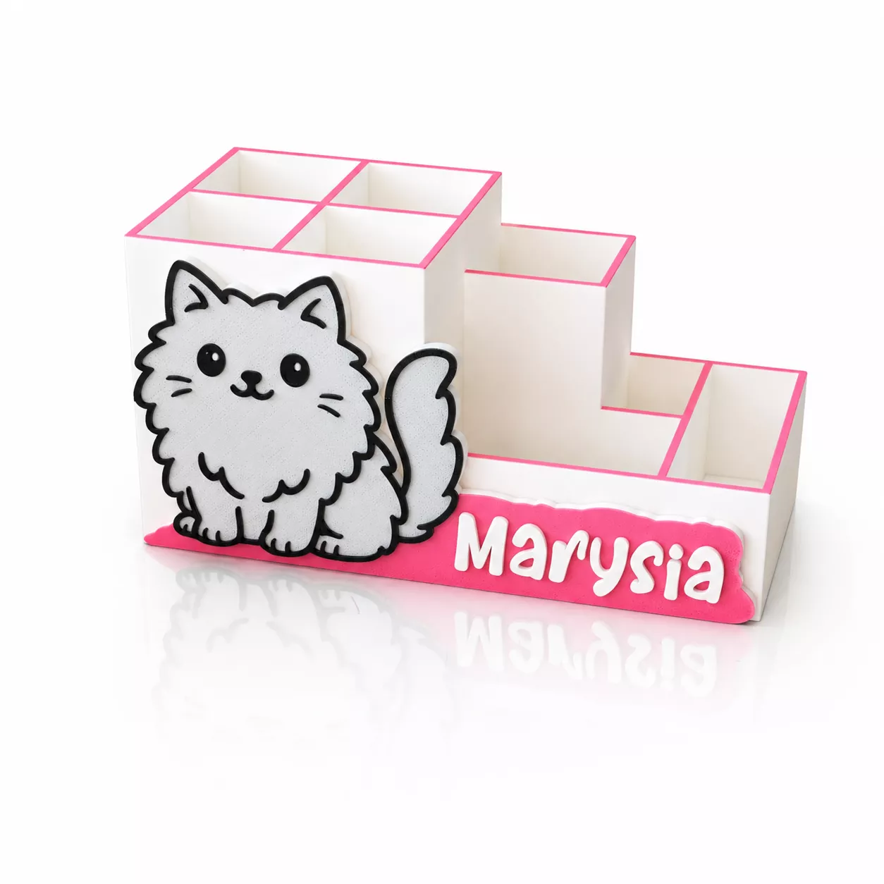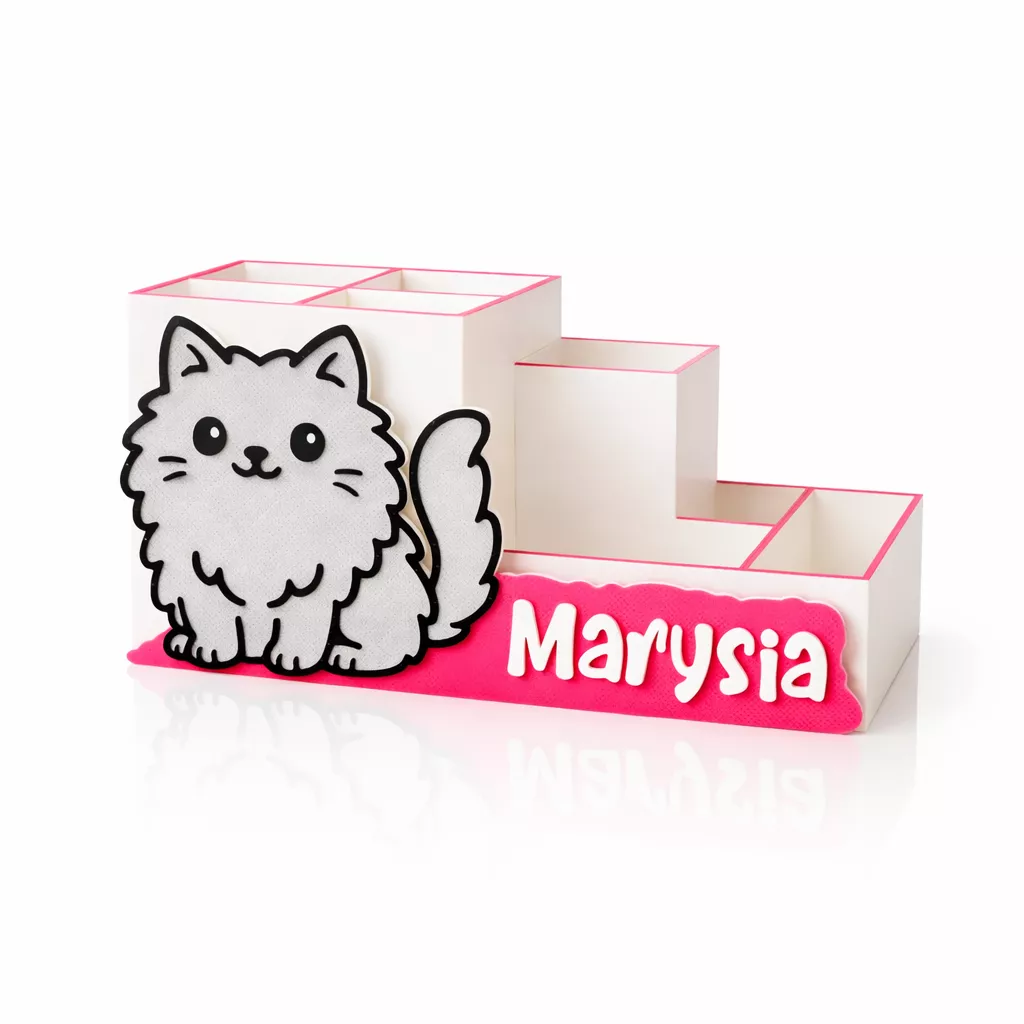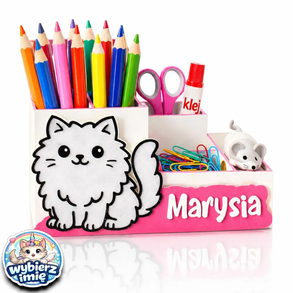 🐱 Personalizowany organizer na biurko kotek puszek – magiczny porządek w przyborach szkolnych!